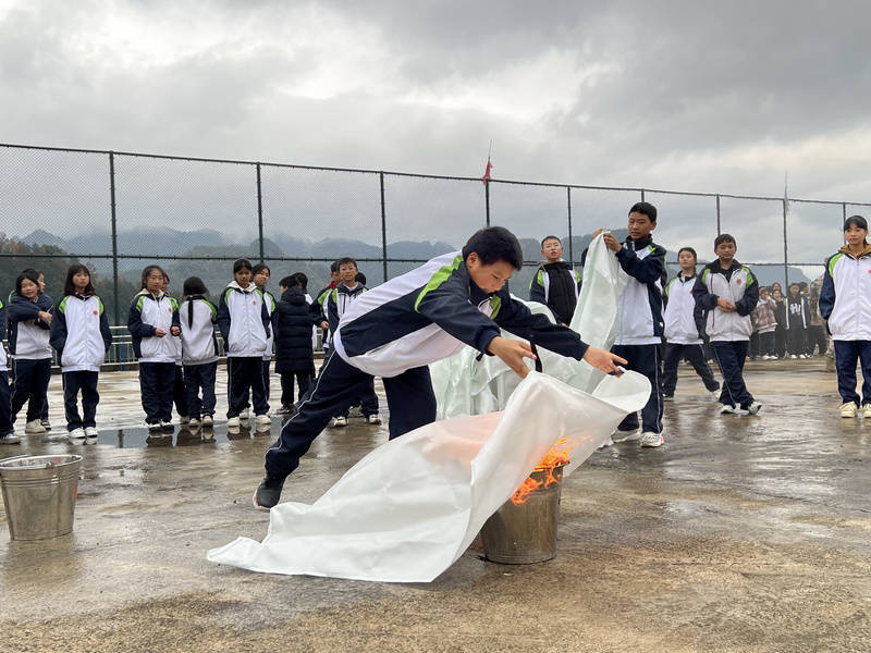 实操灭火毯灭火。